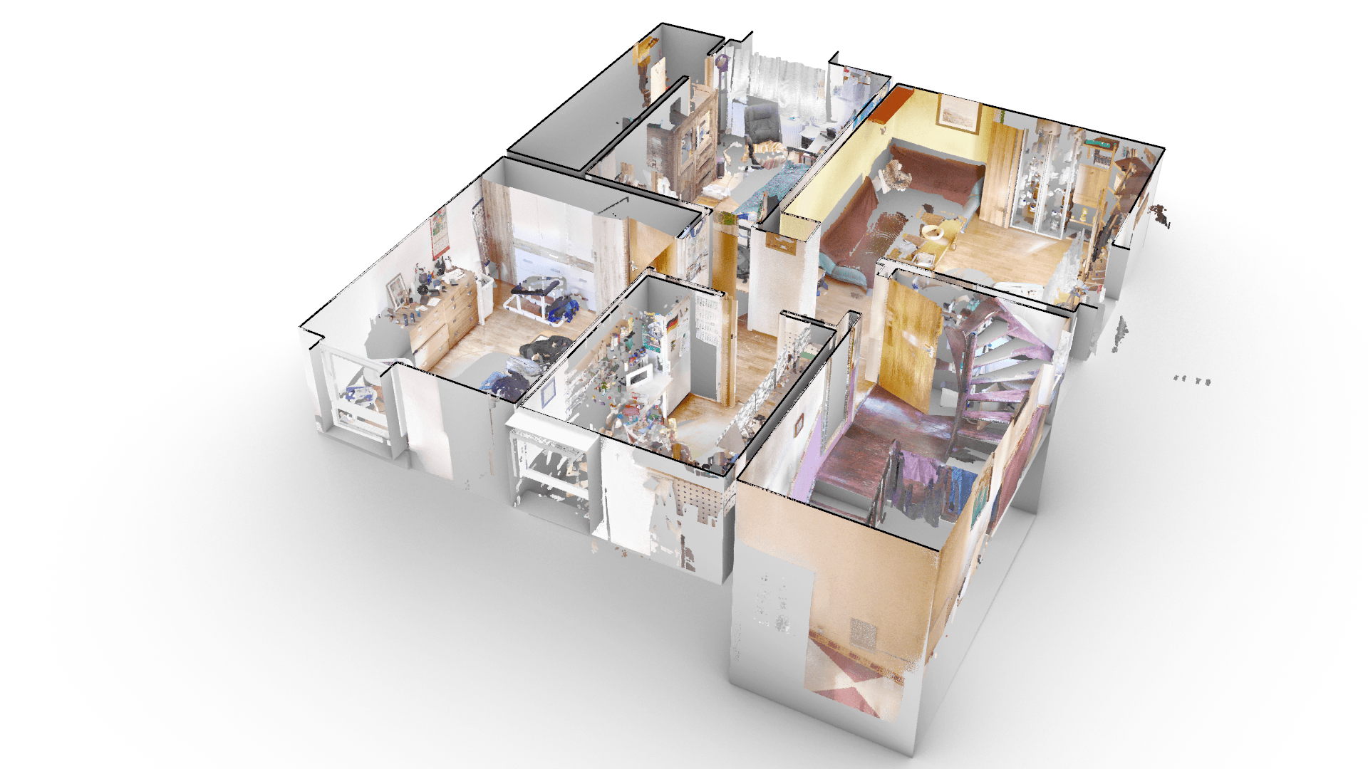 In 3D modelling, basic geometric shapes (e.g. planes, cylinders) are extracted from the point cloud and intersected with each other. More complex shapes are fitted to the point cloud in the best possible way by parameterized reconstruction processes. The result of 3D modelling is a complete model, which can also be quickly converted to 2D plans by horizontal cuts. The model is then exported to all common CAD and vector formats.