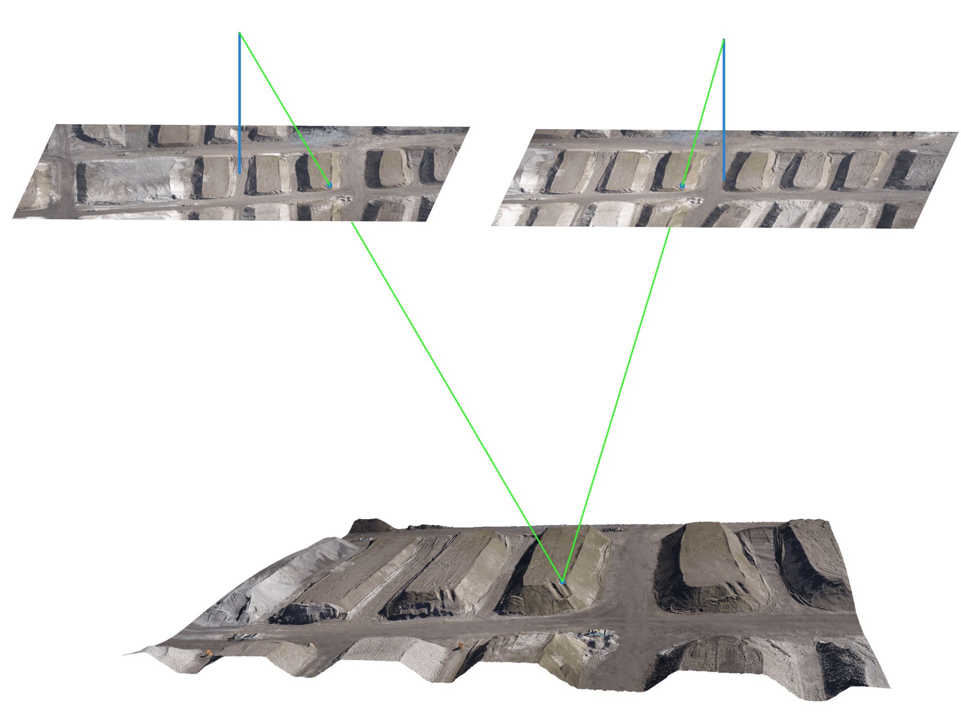 Rezultatem fotogrametrycznej oceny zdjęć lotniczych jest georeferencyjna chmura punktów zarejestrowanego obszaru. Chmura punktów jest triangulowana i służy jako podstawa dla modelu 3D. Model opisuje więc szczegółowy obraz topografii terenu i umożliwia dokładne odwzorowanie rzeczywistej sytuacji. Klasyczne obszary zastosowań obejmują obliczenia objętości i masy, wyznaczanie granicy łamania, ale także cykliczne obserwacje zmian (modele różnicowe).